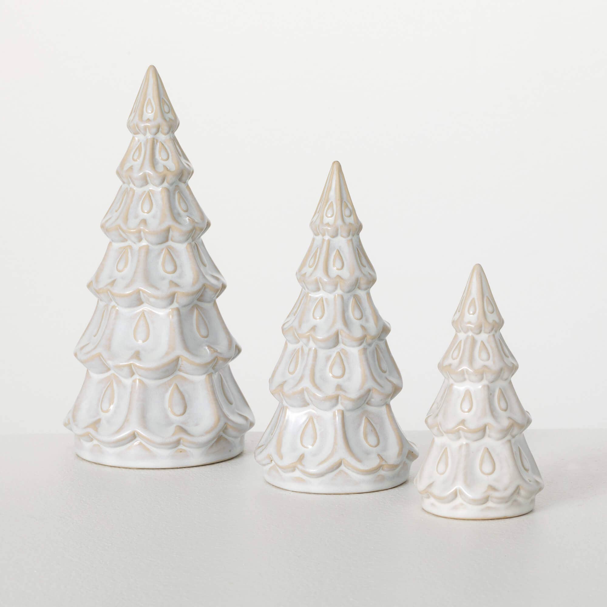 These three petite Christmas tree figurines make a cheeky trio to welcome guests into your warm and cozy home this Christmas season. Small in size, their simple yet charming designs allow these trees to complement any rustic or traditional holiday decor. Their small stature requires little space but delivers big holiday spirit. Place them on an entryway table, mantle or bookshelf to greet visitors with festive charm.