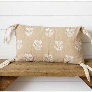 Embroidered Floral Silhouette Pillow with Corner Ties