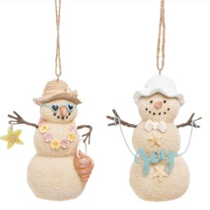 Gallerie II Nautical Beach Sandy Snowman Ornaments S/2