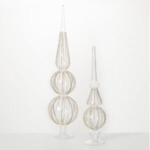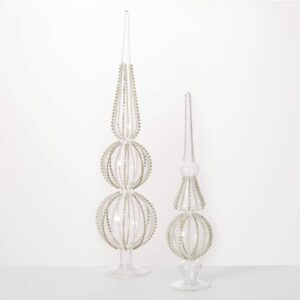 Hand-beaded Glass Finial Clear 22 H Glass
