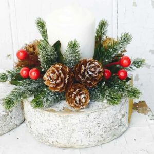 Lancaster Vintage Icy Berries and Pinecones Candle Ring Christmas Decor