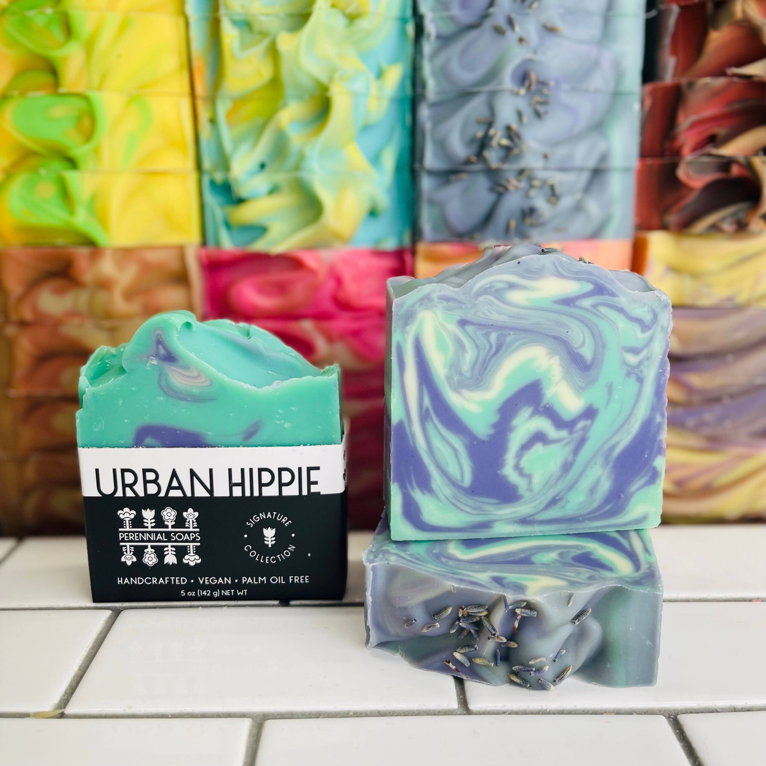Boxed and Branded – Your bars will be packaged in our signature half boxes. The top is open so customers can smell them and the bottom is boxed to keep your shelving and displays tidy.