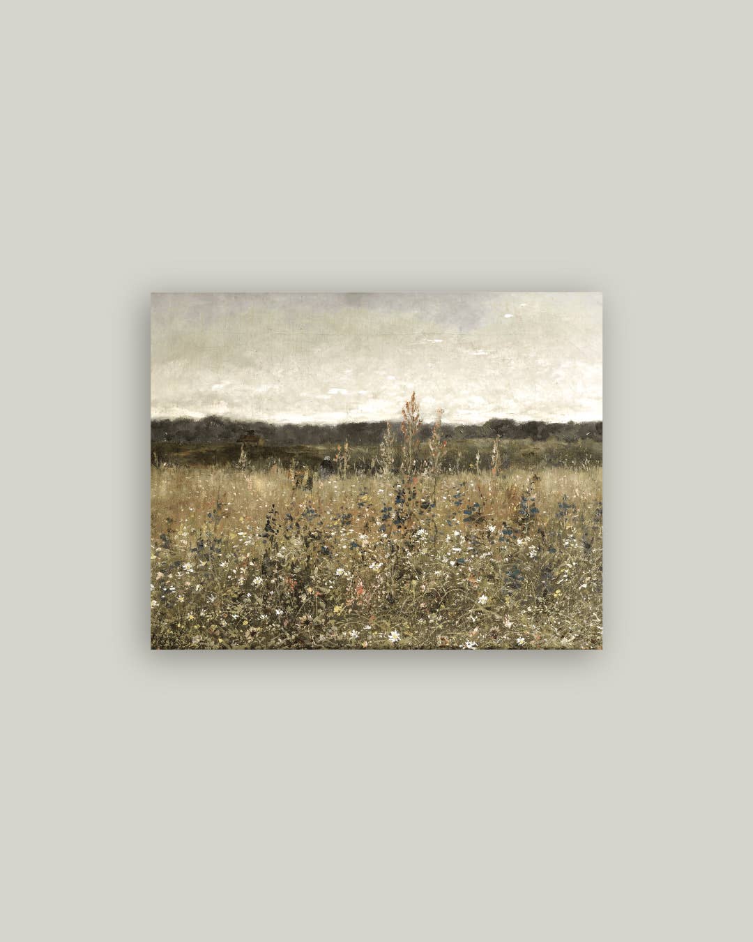 Wildflower Landscape antique artist board is printed on quality canvas, giving it a lasting finish, then applied to hardboard. A beautiful, versatile product that can be placed on an easel, a shelf, or placed in your own frame! This is an authentic reproduction of the original artwork.